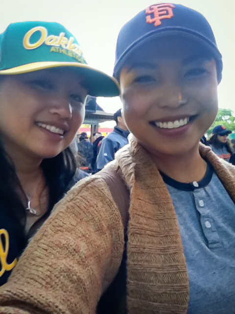 So you can understand how it was very easy for me to assume that she was a Giants fan. I literally discovered the truth that day and was in shock to see her decked out in her A’s gear. Oh well. I love you either way cousin!!