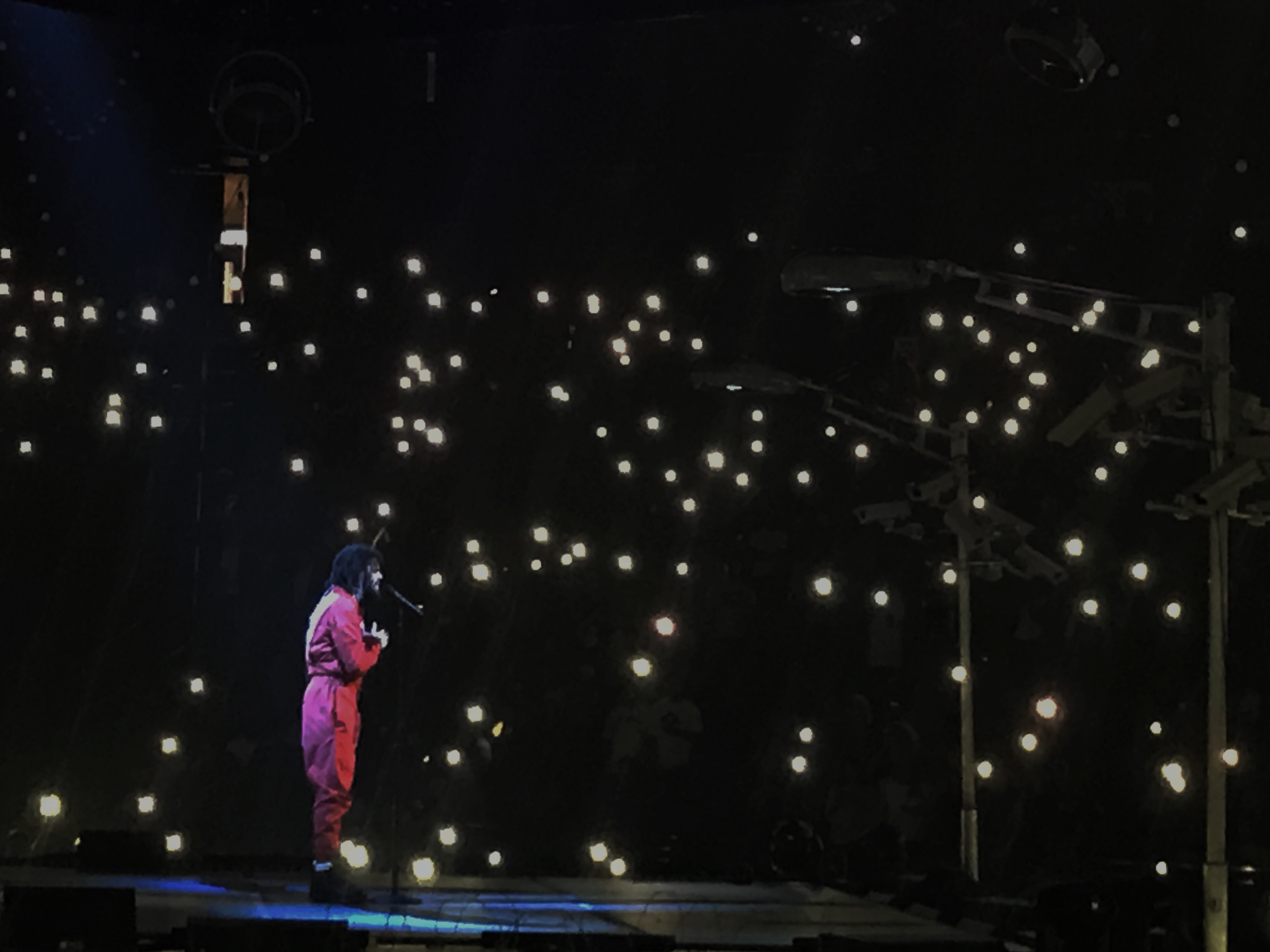 We take our cellphones and lighters out, and illuminate the arena. He serenades us with one last song and a final message.