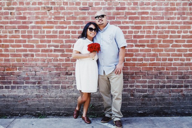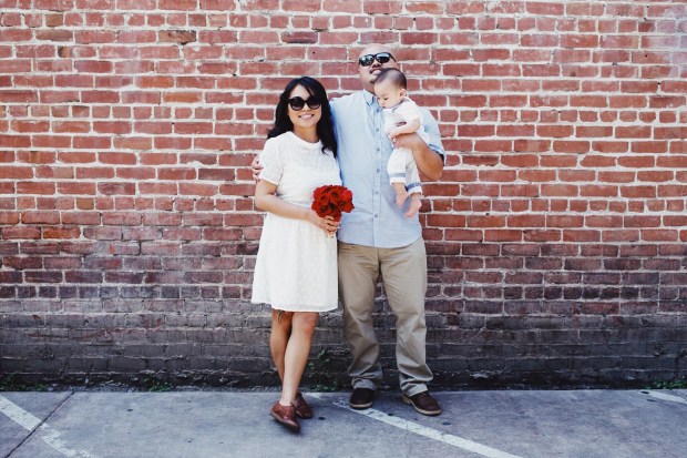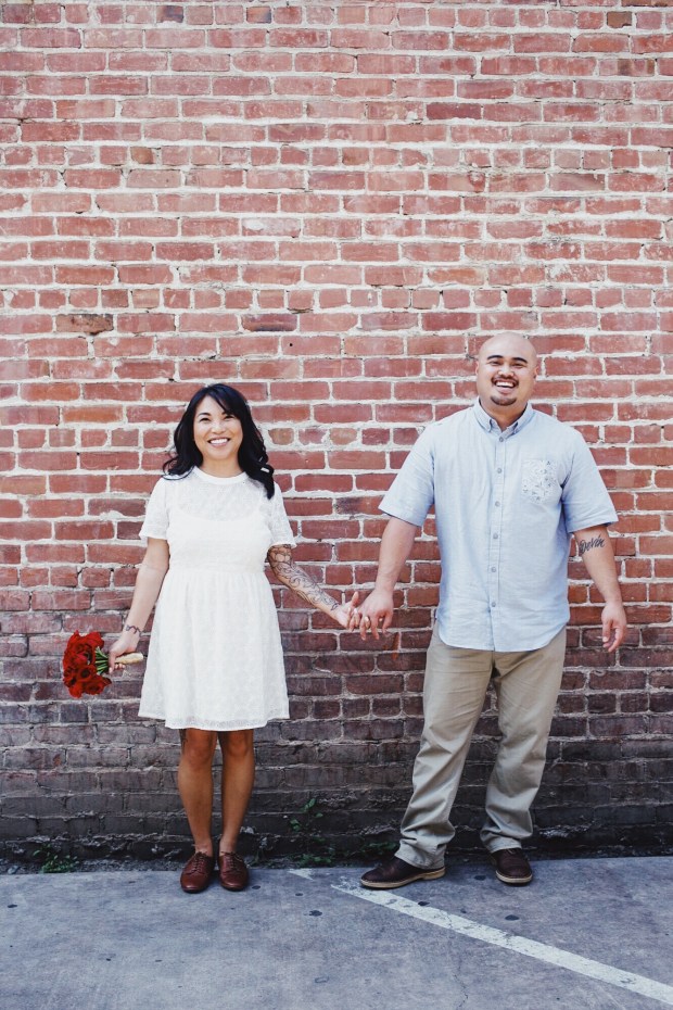We had an impromptu reception at San Pedro Square Market. After all was said and done, we ended up having that fictitious lunch we mentioned earlier with everyone in the end. After our meal, we walked on over to the Old Wagon Saloon and Grill, and took some pictures in front of their brick wall.