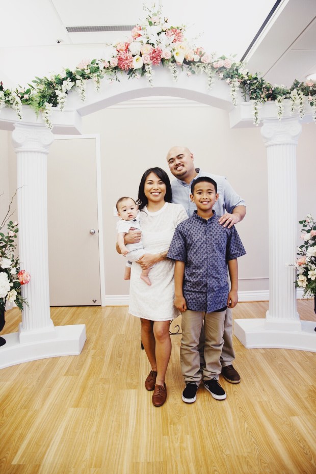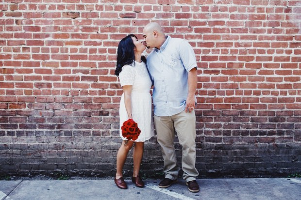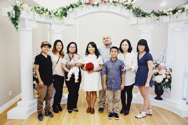 Once our names were called, everyone joined us in a little room, that had an alter, and some fake flowers set up – the standard wedding ceremony decor. Nothing fancy, nothing pretentious. We loved it.